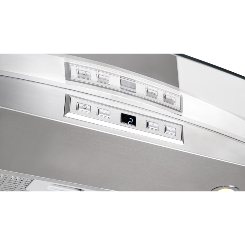 Máy hút mùi có kiểu dáng hình chữ T ngược, kết hợp mặt kính cong độc đáo, chiếm không gian nhỏ, thích hợp với nhiều kiểu thiết kế bếp. Sản phẩm có màu bạc tinh tế, làm tăng tính thẩm mỹ cho không gian nấu nướng của gia đình bạn.