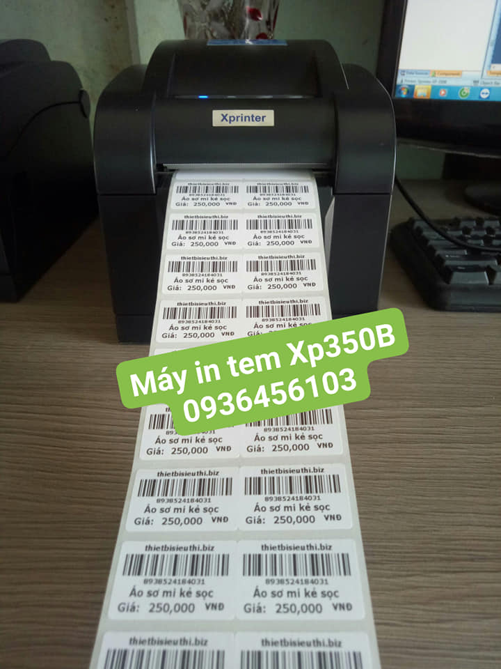 Thông Tin Máy In Mã Vạch Xprinter XP - 350B máy in mã vạch hay máy in tem nhãn là thiết bị ngoại vi được nối với máy tính qua internet, có công dụng là in thông tin và mã vạch lên bề mặt tem nhãn theo yêu cầu người sử dụng.  Máy in mã vạch dùng công nghệ in gián tiếp nhiệt hoặc in trực tiếp giúp nâng cao tốc độ in và đảm bảo chất lượng mã vạch khi in.  Đặc điểm nổi bật của máy in mã vạch là có hệ thống cảm biến làm cho máy in hiểu rõ về quy cách con tem.   Xprinter XP 350B có độ phân giải 203dpi cho ra bản in sắc nét, tốc in cực nhanh lên đến 127mm/s. Máy in mã vạch Xprinter XP 350B là sản phẩm mới đang được nhiều khách hàng ưa chuộng hiện nay bởi kiểu dáng nhỏ gọn, giá cả hợp lý. Xprinter 350B là máy in nhiệt nên việc sử dụng cũng đơn giản hơn khi không còn phải lắp mực như các loại máy in phổ biến khác trên thị trường. XP - 350B có giá thành hợp lý đáp ứng được yêu cầu tài chính đối với các mô hình thương mại bán lẻ. Mặt khác, bạn cũng tiết kiệm được thêm chi phí khi không còn phải mua mực in. máy in tem Xprinter XP - 350B  được ứng dụng trong nhiều loại mô hình kinh doanh: các siêu thị mini, các shop thời trang, nhà hàng... Hình ảnh máy in mã vạch Xprinter XP-350B   Lưu ý : Độ bền mã vạch theo tiêu chuẩn Trong nhà (in door): 12-60 tháng ( nhiệt độ 20-45 độ C ) Ngoài trời (out door): 6-12 tháng ( trực tiếp ánh nắng mặt trời