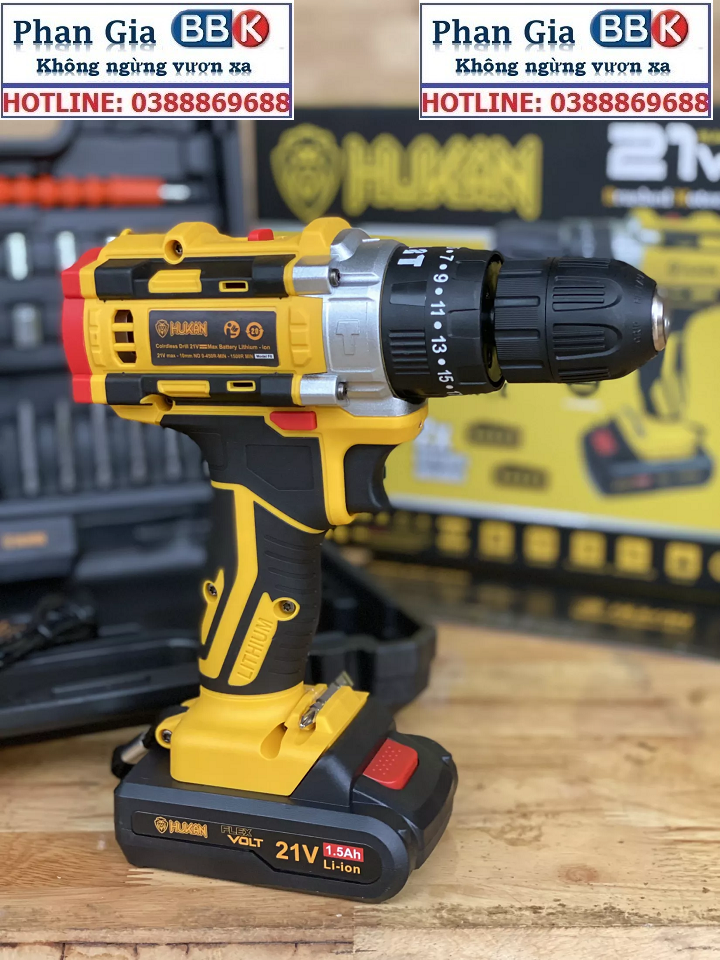 BỘ MÁY KHOAN PIN BẮT VÍT HUKAN F8 công suất 21V - pin 5 Cell - ĐẦY ĐỦ ĐỒ NGHỀ - KHOAN TƯỜNG BẮN VÍT