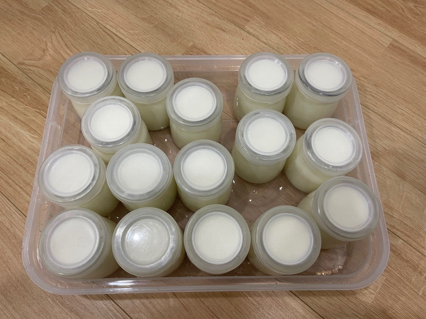 - Sau khi ủ xong cho các cốc sữa vào ngăn mát tủ lạnh khoảng 2 tiếng rồi ăn