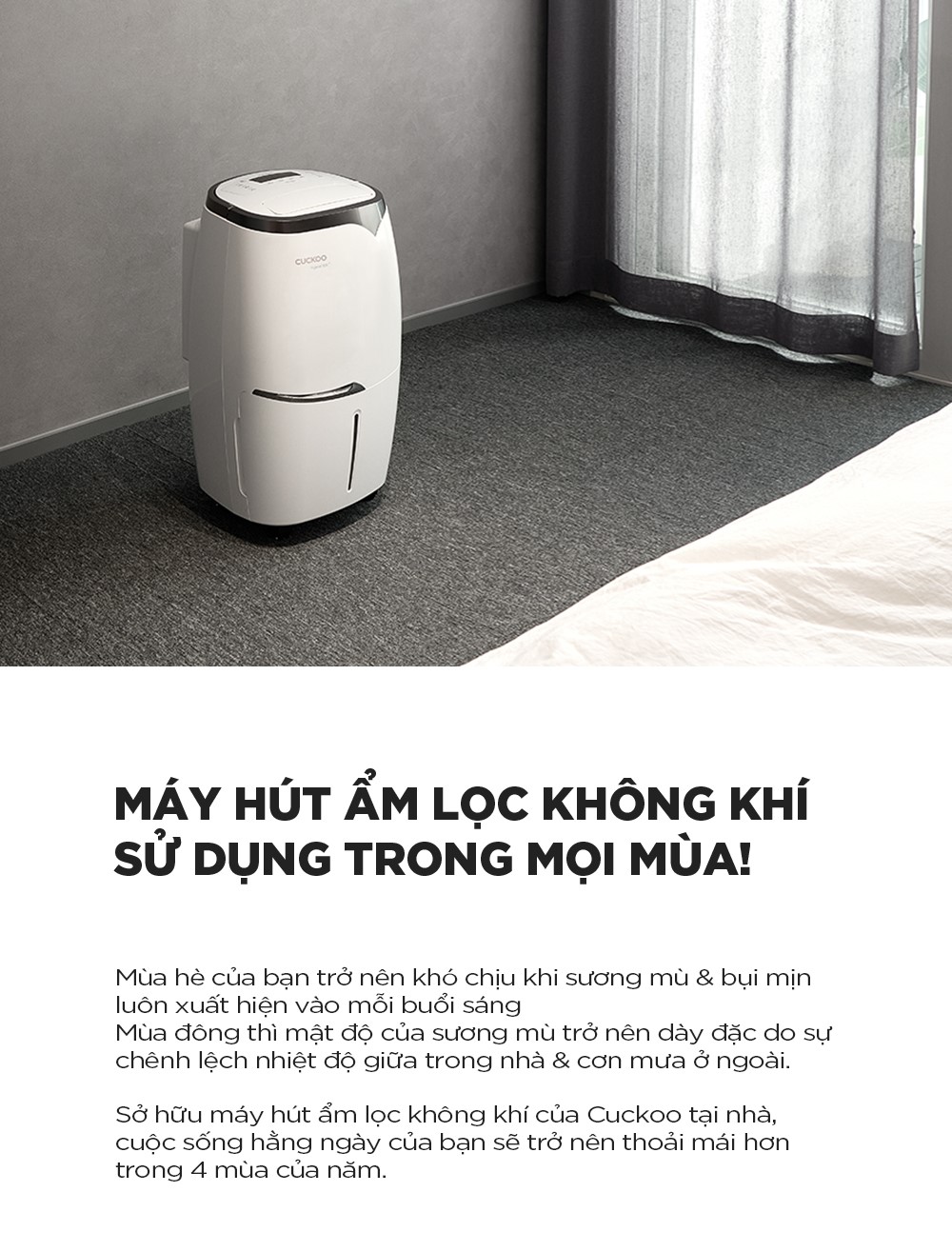 – Khả năng hút ẩm mạnh mẽ, mang đến nguồn không khí trong lành trong mùa mưa ẩm ướt