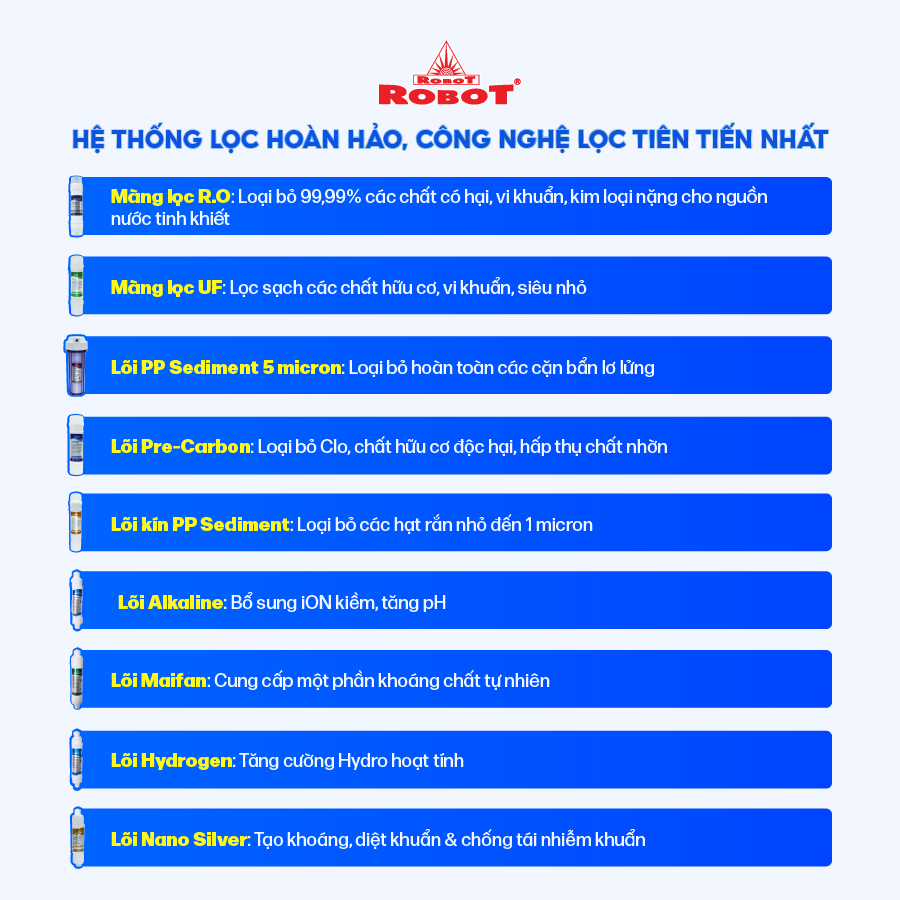 Máy lọc nước Robot - Tích hợp công nghệ lọc tiên tiến R.O + UF + Hydrogen