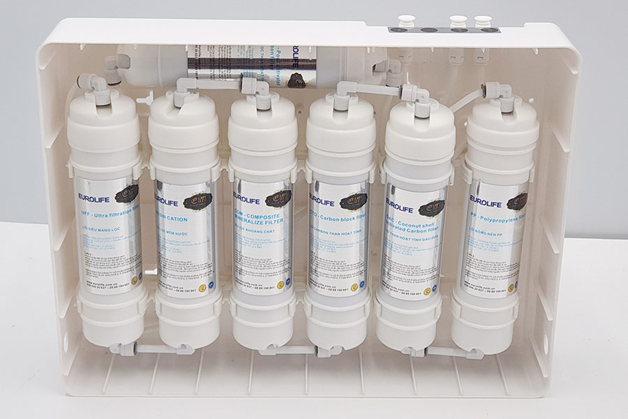- Lõi Resin ( Lọc mềm) Chức năng: được cấu tạo từ hạt nhựa trao đổi Ion Cation, lõi lọc có khả năng loại bỏ kim loại nặng, chất tẩy rửa, chất hữu cơ và các hoá chất độc hại. Ngoài ra lõi lọc còn có khả năng trao đổi Ion, giữ lại các yếu tố làm nước cứng gây tắc màng như Ca, Mg,.. THIẾT KẾ VƯỢT TRỘI Máy lọc nước Eurolife EL-UF7 được thiết kế với 7 lõi lọc, được định vị chắc chắn trong Panel bằng nhựa PVC cao cấp và mặt kiếng sáng bóng dễ dang lau chùi vệ sinh. Mặt sau được thiết kế với 2 khoen treo đơn giản, dễ dàng lắp đặt. Máy có 3 đầu kết nối : Nước cấp vào, nước xả thải và nước đã lọc. Được phân biệt rõ ràng, dễ kết nối Bạn có thể lắp ngay dưới gầm chậu rửa chén để tiết kiệm không gian và tiện dụng hơn. PHỤ KIỆN ĐI KÈM Phụ kiện kèm Máy lọc nước uống trực tiếp 5 cấp độ lọc Eurolife EL-UF5 bao gồm: Thân máy đã lắp lõi lọc 01; Vòi và phụ kiện 01; Van nối dây và vòi nước ra 01; Ống dẫn nước 04m; Bát gắn vòi 01; Hướng dẫn sử dụng 01; Bộ chia đầu vào 01; Phiếu bảo hành 01; Ốc vít 05; Van khóa 01. Sản phẩm được đi kèm với vòi xả cùng các van đấu nối. LẮP ĐẶT ĐƠN GIẢN Sản phẩm không thể thiếu cho mỗi căn bếp Việt ! Hãy chăm lo sức khỏe của người thân và gia đình của bạn ngay hôm nay, bắt đầu từ nguồn nước thuần khiết mà Eurolife sẽ mang lại cho bạn. Hãy trải nghiệm cùng sản phẩm thương hiệu Eurolife để cảm nhận giá trị chúng tôi mang lại cho khách hàng. Chất lượng, uy tín và dịch vụ hậu mãi tốt luôn là cam kết của chúng tôi. CHẤT LƯỢNG HÀNG ĐẦU Thương hiệu Eurolife Việt Nam là một thương hiệu uy tín hàng đầu trên thị trường Việt Nam với 12 năm kinh nghiệm Các sản phẩm Eurolife đạt nhiều chứng chỉ uy tín trong nước như :