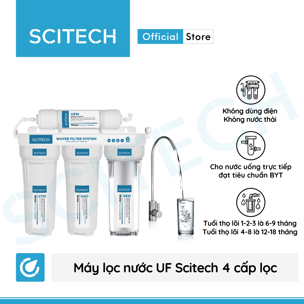 Máy lọc nước UF Scitech Ultrabox 4-5 cấp lọc giúp lọc sạch cặn bẩn, rỉ sét, rong rêu, chất hữu cơ và các tạp chất khác lẫn trong nước. Bộ lọc thích hợp dùng lọc