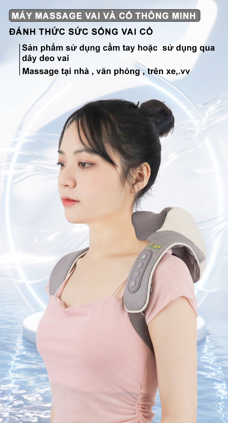 » Thiết kế quai đeo qua vai chắc chắn và tiện nghi giúp người dùng có thể linh hoạt sử dụng tại nhiều thời điểm khác nhau trong ngày, dễ dàng vừa mát xa vừa thực hiện các công việc nhẹ nhàng khác