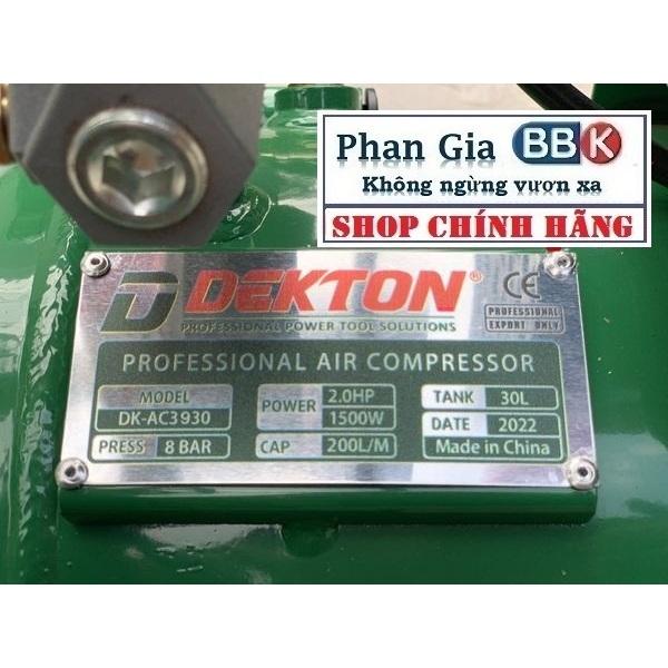 THÔNG SỐ KỸ THUẬT: Máy Nén Khí Giảm Âm Không Dầu 2.0HP / DK-AC3930 / Thể Tích 30L + Thương hiệu: DEKTON + Điện Áp :220v/50Hz + Công Suất 2.0Hp / 1500W + Tốc Motor : 2800rpm/min + Đầu...
