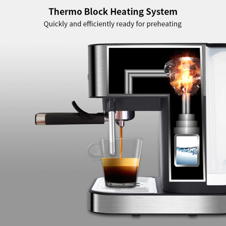 - Áp suất 20 bar tạo ra một ly Espresso với hương thơm đậm đà và lớp kem màu hạt ở trên.