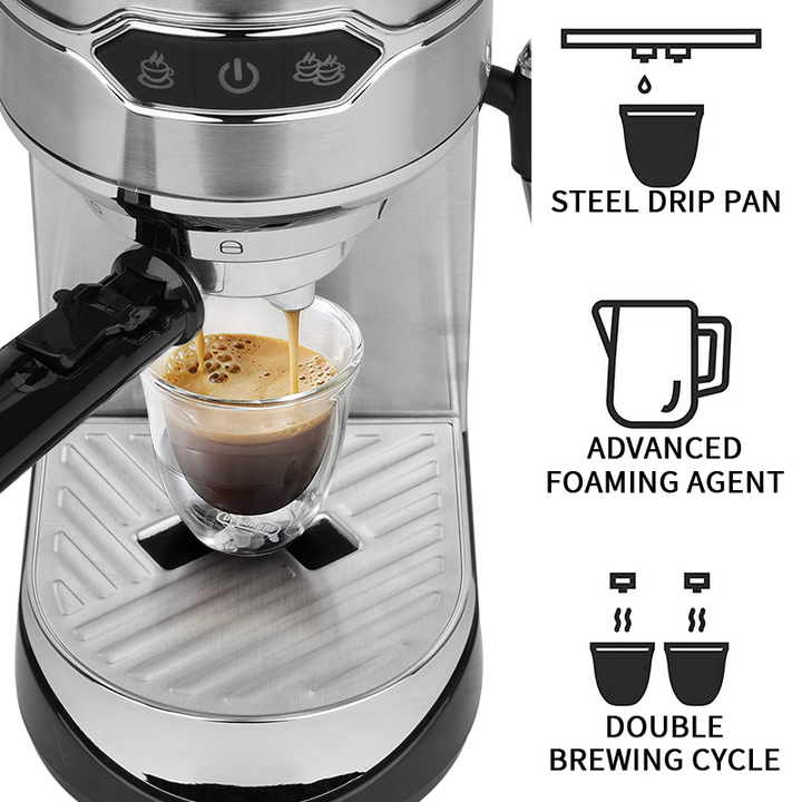 Bơm áp suất 20-bar của Ý: Áp suất hoàn hảo để chiết xuất hương vị, dầu và các thành phần hòa tan khác của cà phê, tạo nên những tách cà phê chất lượng với hương