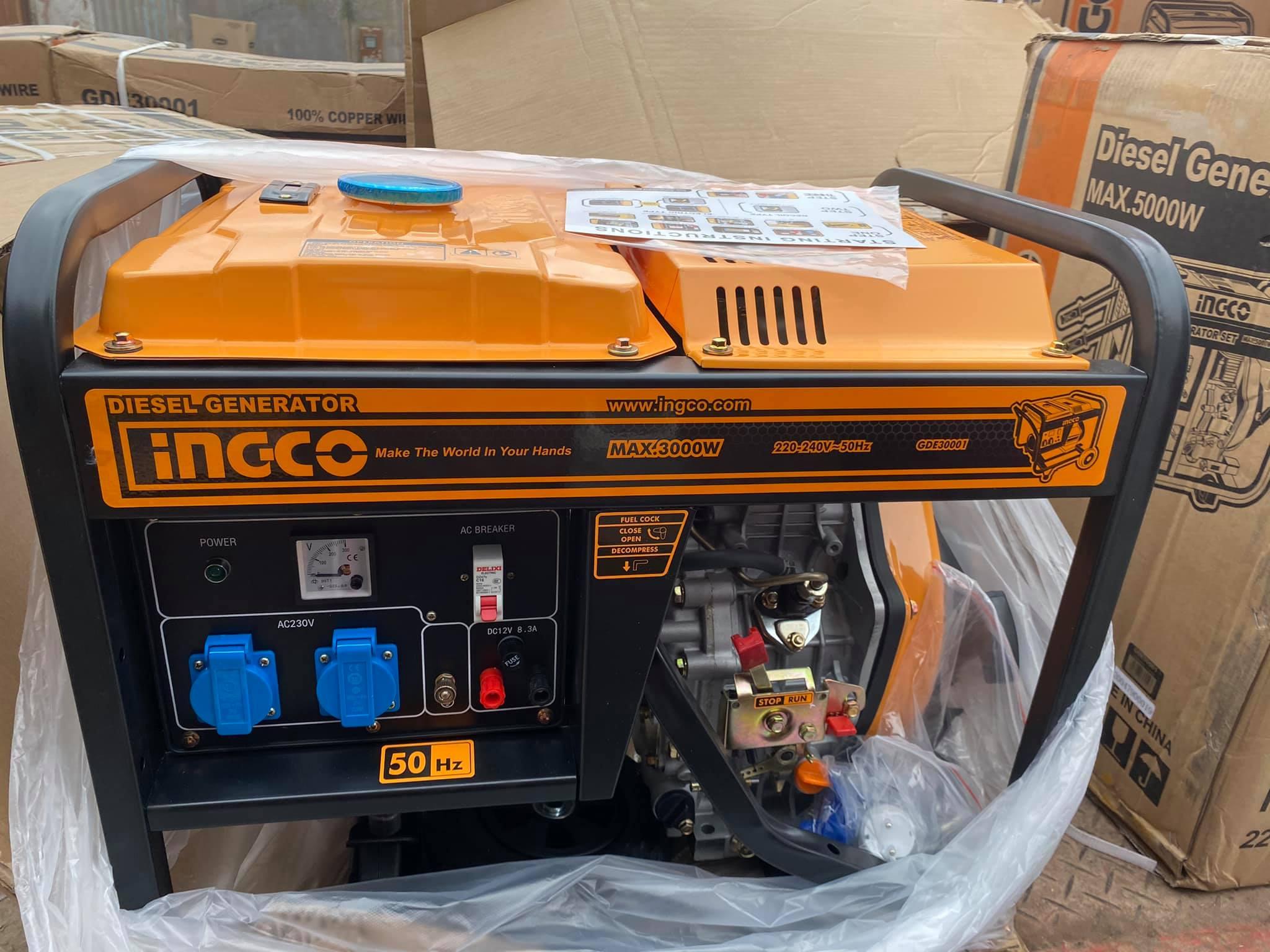 Máy phát điện INGCO GDE30001 dùng nhiên liệu dầu có công suất tối đa là 3.0kVA, đây là dòng sản phẩm mới được sản xuất bởi dây chuyền công nghệ hiện đại hàng đầu của