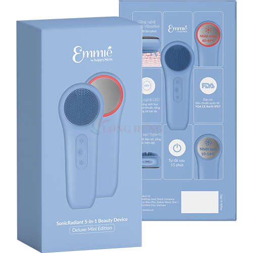 Máy rửa mặt chăm sóc da mini Emmié SonicRadiant 5-in-1 Beauty Device - Deluxe Mini Edition Thiết kế thông minh: Mang đến trải nghiệm sử dụng thuận tiện và hiệu quả. Công nghệ 5 trong 1: Công nghệ Sonic Vibration 15,000 lần/phút giúp loại bỏ bụi bẩn và dầu thừa. LED Red Light Therapy: Thúc đẩy quá trình tăng sinh collagen cho làn da khỏe mạnh. LED Blue Light Therapy: Hỗ trợ khử khuẩn và giảm viêm hiệu quả. Chức năng nhiệt 40-44℃: Kích thích tuần hoàn máu, mang lại sự thư giãn cho da. Chức năng nhiệt lạnh 10-14℃: Giúp thu nhỏ lỗ chân lông và làm dịu da. Chứng nhận an toàn: Đạt tiêu chuẩn CE, RoHS, FDA. Khả năng chống nước IPX7: Sử dụng an toàn ngay cả trong môi trường ẩm ướt. Chất liệu thân thiện: Lông Food Grade Liquid Silicone, an toàn cho da và môi trường. Tiện ích thông minh: Chân đế dễ sử dụng và cổng sạc Type-C hiện đại. Chế độ tự tắt thông minh: Giúp tiết kiệm năng lượng sau 15 phút không sử dụng.   Hướng dẫn sử dụng Máy rửa mặt Emmié SonicRadiant 5-in-1