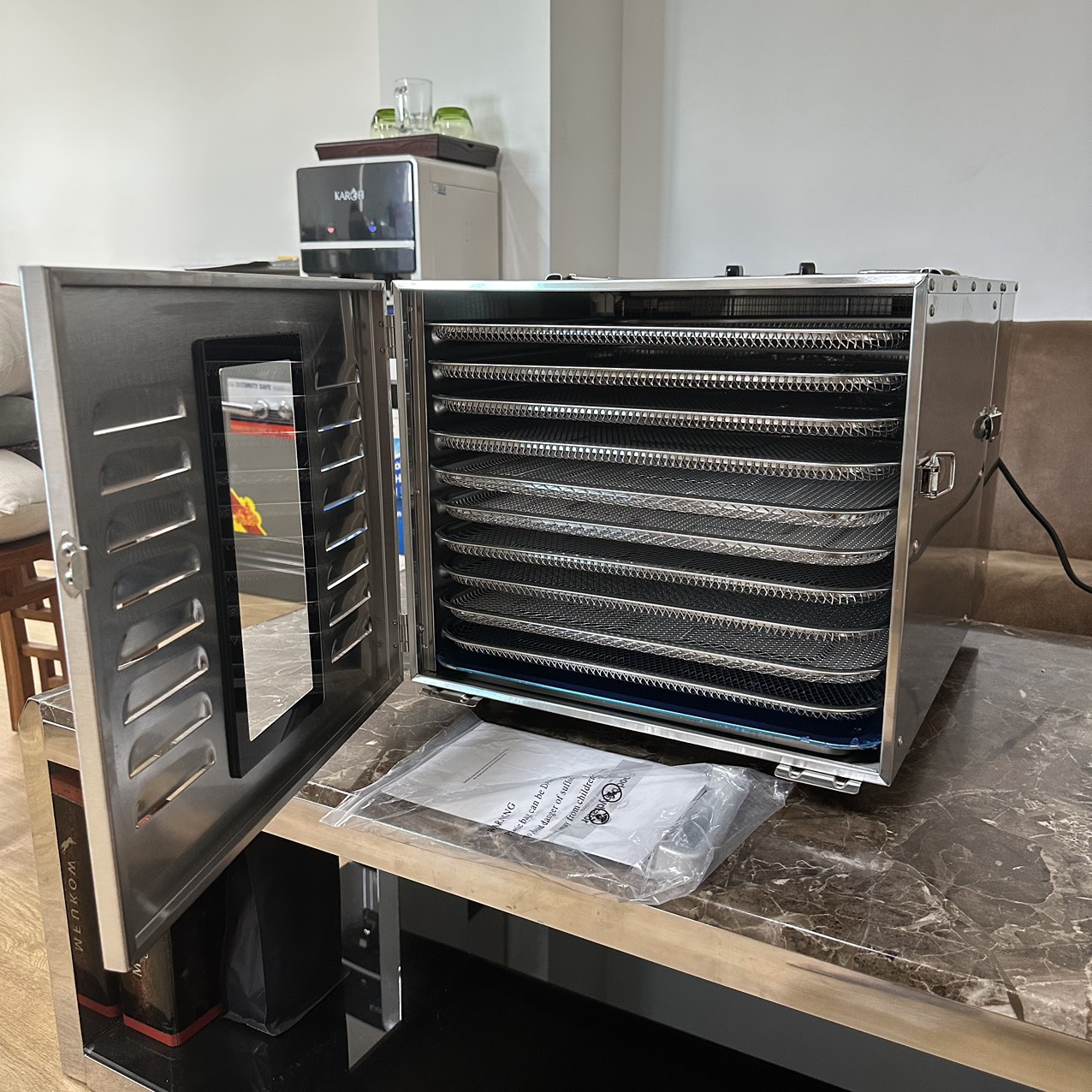 - Có 10 khay lưới inox + 1 khay đặc hứng đồ, nước rớt