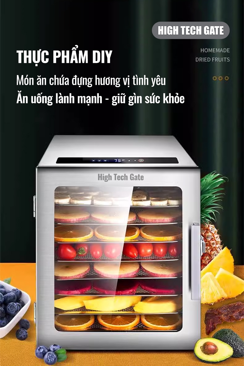 Máy sấy thực phẩm inox HTG-ST01 Sấy khô hoa quả, trái cây, thịt cá rau củ, đa năng Tiện ích nhỏ gọn cho mỗi gia đình Việt, tự tay chế biến các món ăn ngon