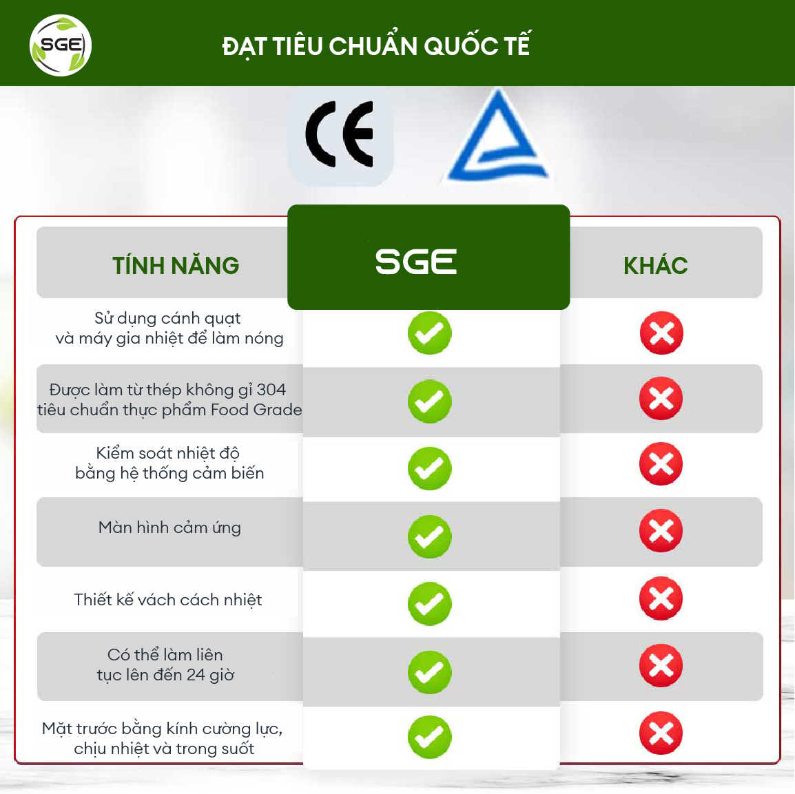 Tủ sấy thực phẩm GE-Black của SGE được thiết kế và phát triển liên tục. Phiên bản đặc biệt GE-Black dành cho hộ gia đình và nhà hàng hàng cao cấp với thân hình nhỏ