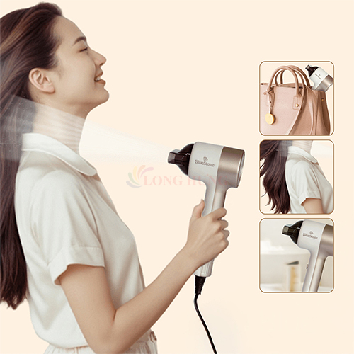 Kích cỡ nhỏ gọn, Tốc độ gió mạnh 30 triệu ion âm mang đến mái tóc mềm mại và bóng mượt Chăm sóc ion Công suất cao 1600 W để sấy khô nhanh Máy