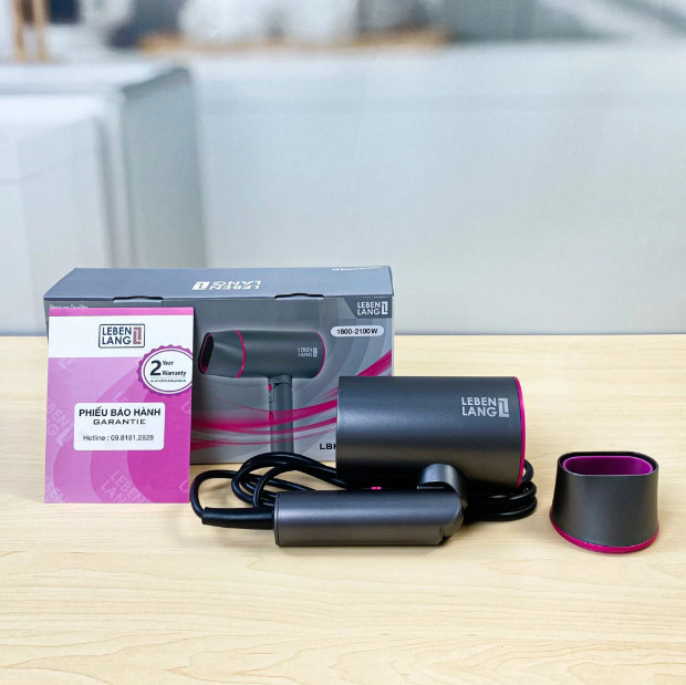 Máy sấy tóc Lebenlang LBH3088 (2100W) của Đức, kiểu gấp gọn, chống xơ rối tóc, bảo hành 2 năm
