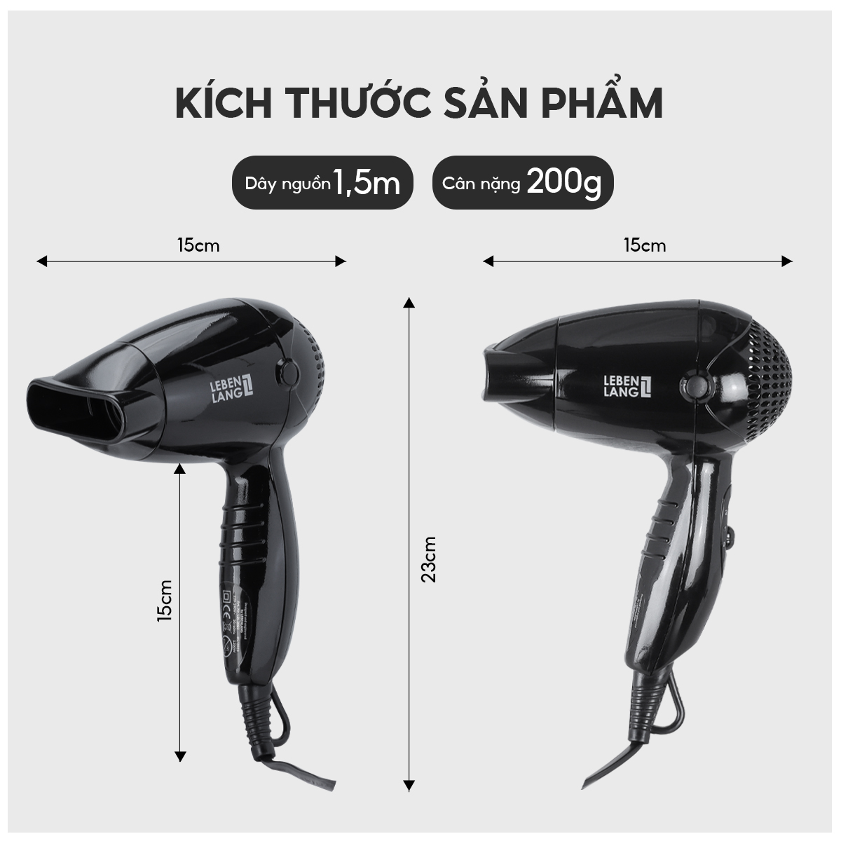 ✨Máy sấy tóc mini Lebenlang LBL3083, chống xơ rối tóc bằng công nghệ ion 1200W, nhỏ gọn tiện lợi, tặng kèm túi đựng, bảo hành 2 năm - hàng chính hãng