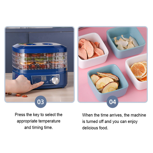 Như vậy, bạn không còn bận tâm đến lượng hoa quả dồi dào trong tủ lạnh mà chưa thể tiêu thụ hết, bạn cũng không còn lo lắng việc củ quả bị hư hỏng do tích trữ quá lâu. Máy sấy hoa quả thịt thực phẩm 5 tầng có hẹn giờ sẽ giúp bạn xử lý nhanh chóng với phương pháp cực kỳ hiện đại. Bạn chỉ cần thái lát hoa quả ra (với những loại hoa quả to) hoặc tách nhỏ (với những dạng quả theo chùm hoặc có vỏ) và đặt vào trong khay sấy.