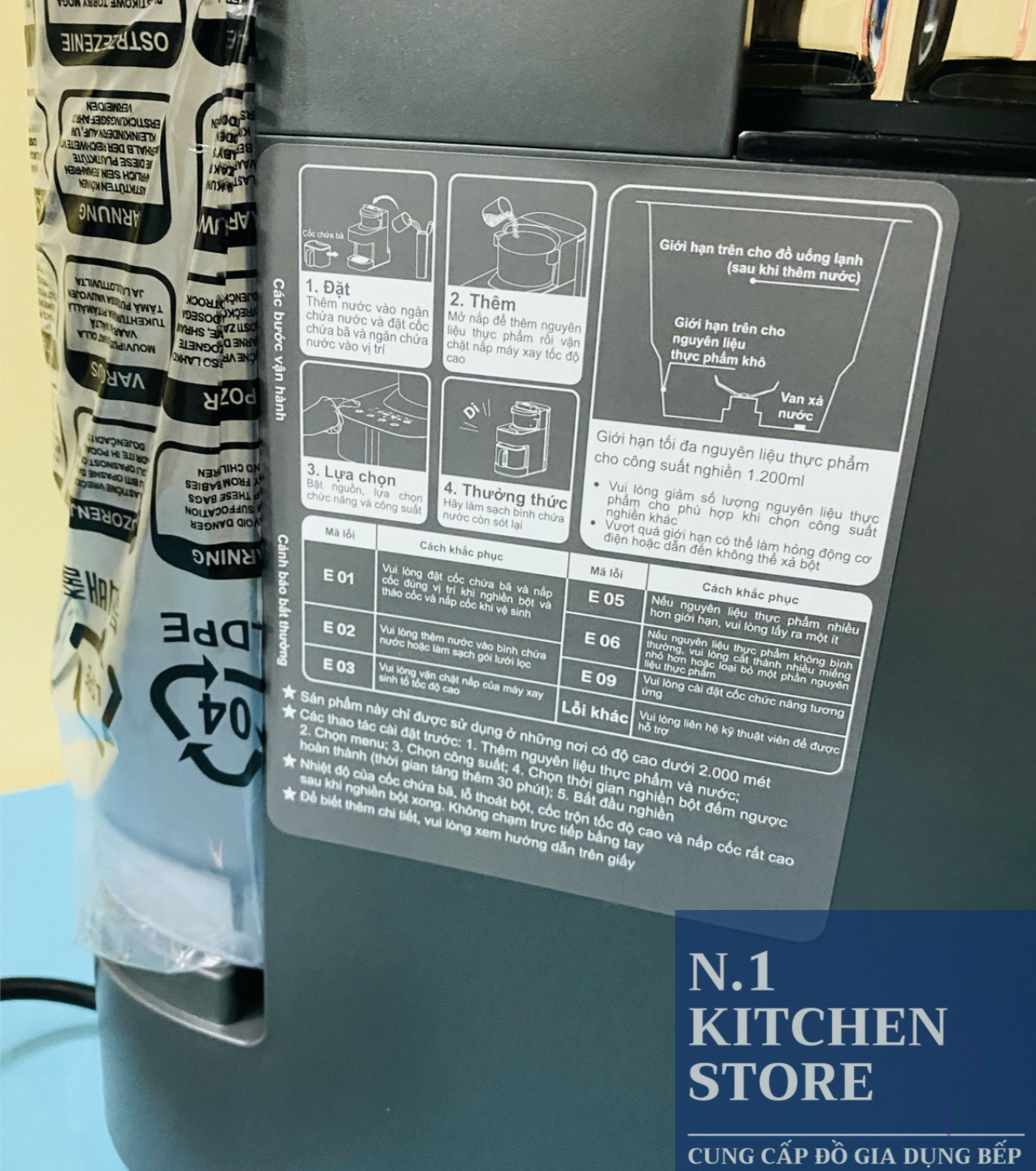• Hiển thị phụ 2: Báo lỗi, ví dụ: như thiếu nắp khoang xay,