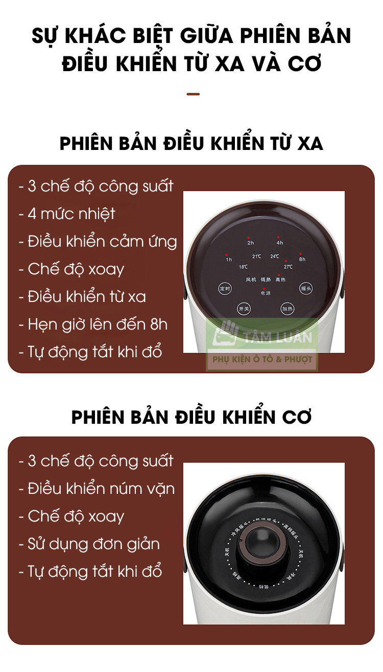 - Máy sưởi mini với 4 chế độ nhiệt (Bản Remote)