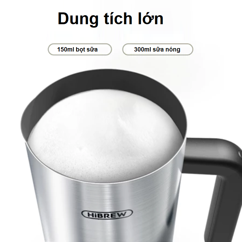 - HiBREW M3A có dung tích lý tưởng cho người sử dụng: Dung tích đánh bọt sữa lên đến 150 ml và làm nóng sữa lên đến 300 ml. Với dung tích này, chỉ cần một lần đánh bọt sữa là bạn đã có thể chế biến ra nhiều đồ uống có bọt hoàn hảo với lớp bọt sữa quyến rũ phía trên bề mặt.