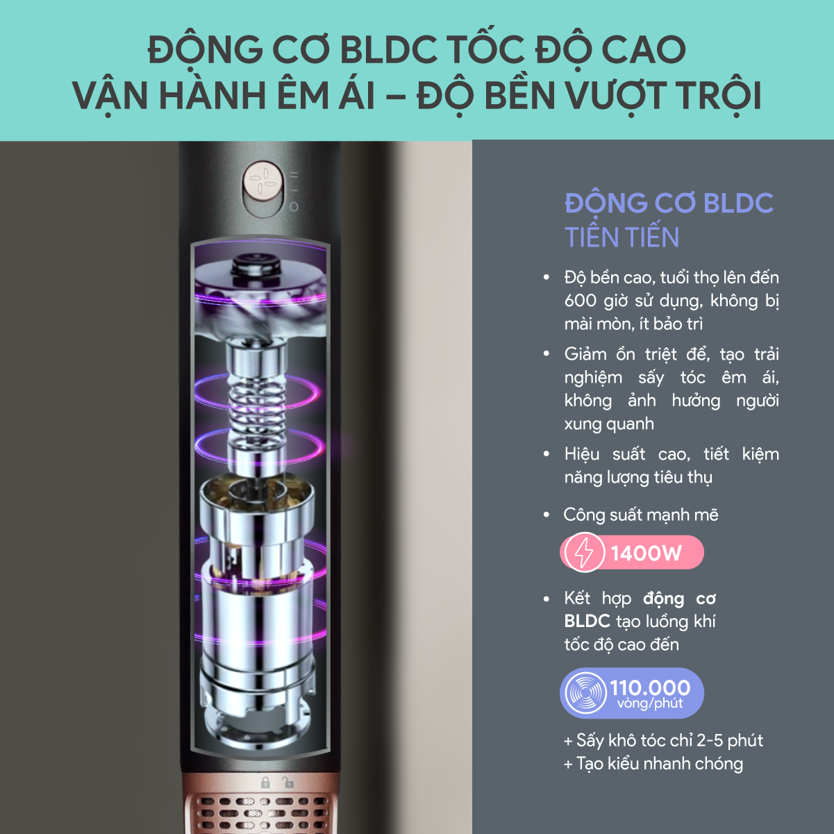 - Công suất 1400W mạnh mẽ kết hợp động cơ không chổi than BLDC