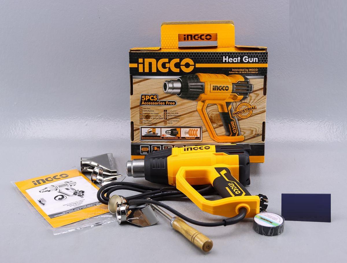 Máy thổi hơi nóng INGCO HG200028 được tặng kèm bộ phụ kiện như hình, mạnh mẽ với công suất 2000W, là 1 trong những máy thổi nhiệt chất lượng nhưng có mức giá rẻ, luôn nằm trong danh sách bán chạy. Ưu điểm của model này là được làm từ chất liệu nhựa ABS nên sở hữu độ rắn chắc cao, chịu nhiệt tốt, chống chịu được sự mài mòn trong suốt quá trình sử dụng, chống biến dạng khi bị tác động mạnh giúp bạn yên tâm sử dụng sản phẩm trong một thời gian dài mà không lo các vấn đề hư hỏng thường gặp như các loại máy thổi hơi nóng thông thường khác