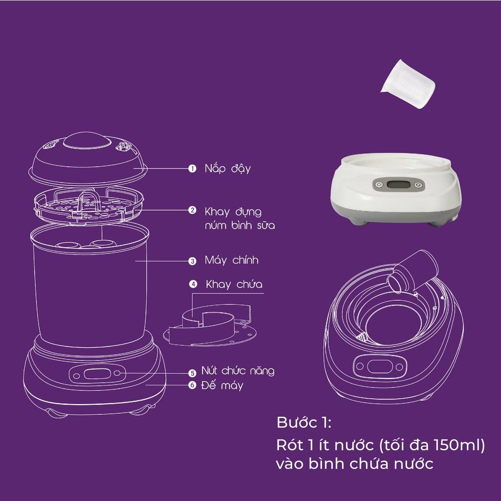 - Có thể tiệt trùng nhiều bình cùng lúc ( lên đến 8 bình ), tiết kiệm tối đa thời gian
