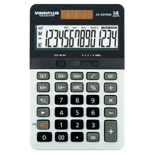 THÔNG TIN CHI TIẾTTên sản phẩm: Máy tính JV-40VNThương hiệu: VINAPLUSModel: JV-40VNBảo hành: 2 nămKích thước (dài x rộng x dày): 176 x 109 X 21 mmHiển thị: 14 sốGIỚI THIỆU SẢN PHẨM- Được thiết...