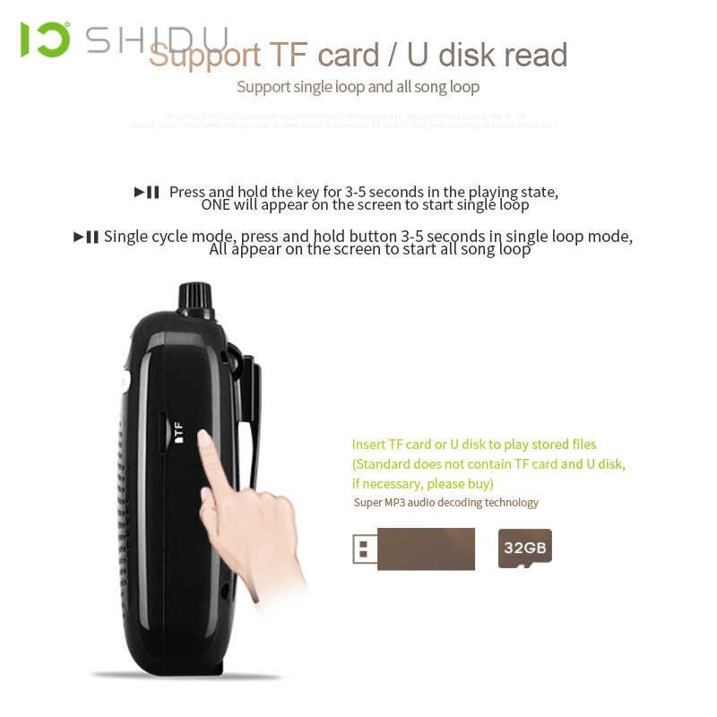- Máy trợ giảng Shidu SD-S258 với thiết kế nhỏ gọn, công suất lớn 10W kết hợp hệ thống loa kép cho giọng nói trung thực, thời gian sử dụng lên đến 15 giờ phù hợp cho
