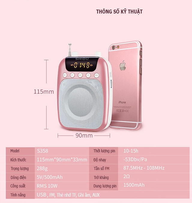 • Với giá cả phải chăng, phù hợp với nhiều đối tượng. SHIDU SD-S358 Bluetooth có 2 loại: máy trợ giảng 1 mic Có dây- Máy trợ giảng 2 mic có dây và không dây FM