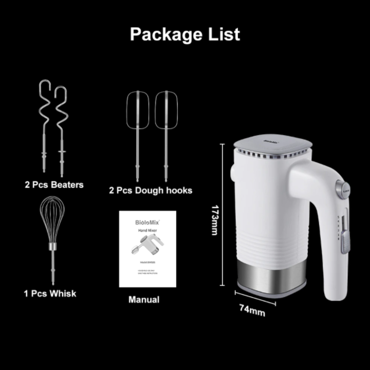 - Cài đặt 5 tốc độ : Máy trộn cầm tay điện BioloMix với động cơ 500W có 5 tốc độ khác nhau đều hoạt động bằng nút điều khiển bằng ngón tay cái, có thể giúp bạn đánh trứng, trộn và giúp bạn trộn nhanh hơn