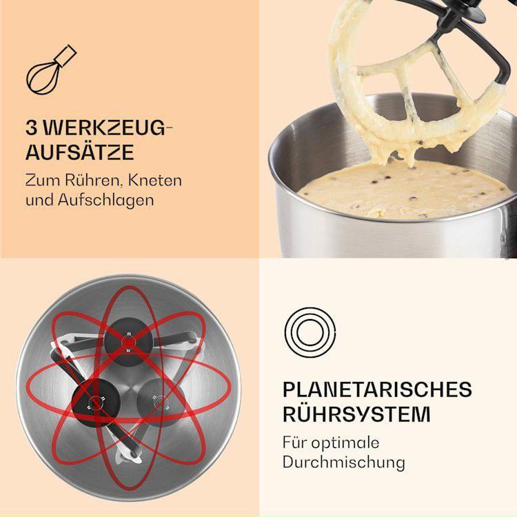 MÁY TRỘN THỰC PHẨM BELLA ROSSA Với công suất 2000 watt trong 6 giai đoạn, hệ thống khuấy hành tinh của máy trộn Klarstein Bella Rosa đáp ứng mọi thách thức của nghệ thuật khuấy