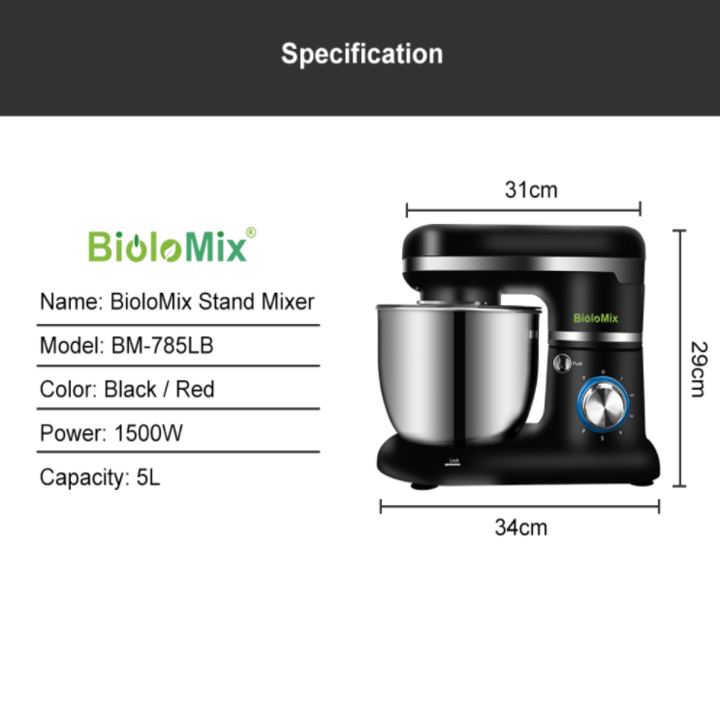 ✨Máy trộn bột và đánh trứng 5 lít, 1500W BioloMix BM785LB công suất 1500W, 6 tốc độ đánh khác nhau, thiết kế hiện đại dễ vệ sinh lắp đặt (HÀNG CHÍNH HÃNG)