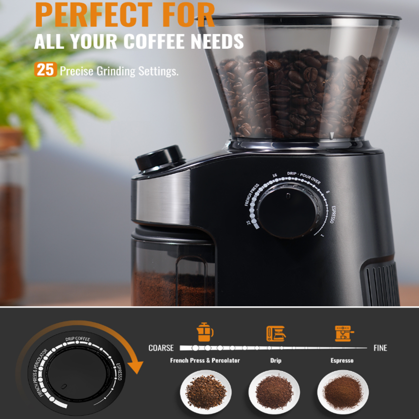 Máy xay hạt cà phê cao cấp thương hiệu Shardor CG836B công suất 150W tích hợp 25 chế độ xay - Hàng Chính Hãng Tiếp nối thành công phiên bản Máy xay hạt cà phê