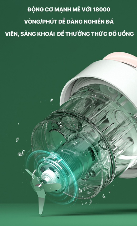 "* Nhỏ gọn với khối lượng 0.4kg, chỉ bằng 25 % so với máy ép bình thường, dung tích 350ml * Thiết kế cối xay kiêm bình nước di động, thuận tiện mang theo khi