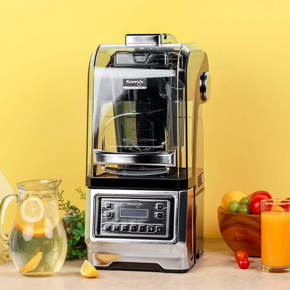 Máy xay sinh tố tự động hút và xả chân không dành cho kinh doanh hiệu Kuvings hoạt động liên tục 3 phút một lần xay và xay được 200+ ly mỗi ngày, gồm 1 cối xay với công suất cực mạnh 3.5 HP – 32,000RMP, 35 công thức tối ưu hóa cho menu quán cà phê, sinh tố được tích hợp sẵn cùng với 5 chế độ nhớ, dao xay cao cấp chuyên dụng cho kinh doanh không sinh nhiệt với công nghệ xay 3 chiều trong môi trường chân không cho nước sinh tố mịn hơn, màu sắc tươi hơn, chậm tách nước, ít bọt và giữ được nhiều Vitamin, Enzym trong rau củ quả. Bảng điểu khiển một chạm cảm ứng để điều chỉnh 5 chế độ xay tự động, chế độ xay nhanh, chế độ xay thủ công và nhồi, tự động đóng mở nắp, nắp chống ồn, chế độ tự động ngắt điện an toàn khi quá tải hay quá nóng và khóa an toàn khi gắn cối xay không đúng cách, có chế độ tiết kiệm điện tự động, thuận tiện sử dụng kinh doanh nhà hàng, quán bar, quán cafe, khách sạn, màu Inox.