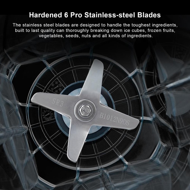- Máy xay sinh tố công nghiệp Biolomix A8700 được trang bị lưỡi xay bao gồm 6 lưỡi với tốc độ xay đạt tối đa đến 55000 vòng/phút. Vậy nên Biolomix A8700 có thể nghiền nát tất cả các loại nguyên liệu có độ cứng khác nhau từ các loại hoa quả, rau củ, thịt, cho đến đá viên và đậu nành. Sử dụng 6 nút điều khiển tốc độ