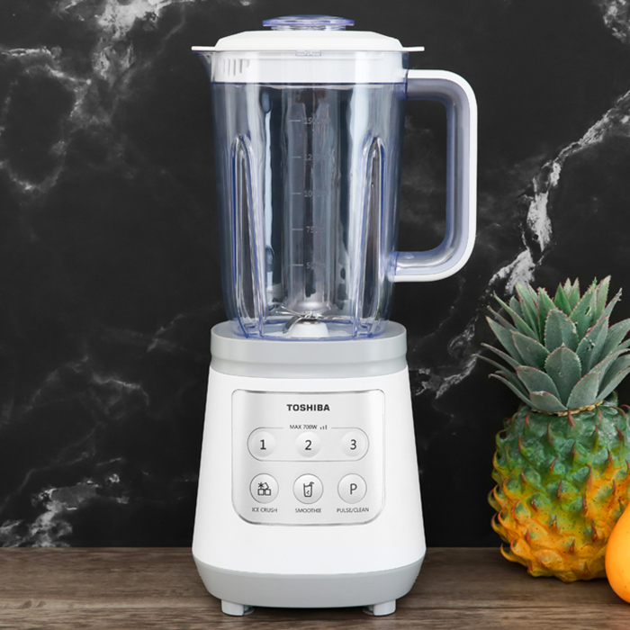 Máy Xay Sinh Tố Toshiba BL-70PR1NV (700W - 1.5 Lít) thiết kế sang trọng, hiện đại với 2 màu xám trắng hòa quyện góp phần tôn vinh vẻ đẹp hiện đại cho mọi không gian bếp.