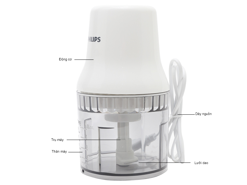 Thiết kế đẹp mắt, chân đế chống trượt Máy Xay Thịt Philips HR1393 sở hữu thiết kế nhỏ gọn, tinh tế, hiện đại, đây sẽ là một phụ kiện tuyệt vời giúp cho những người nội trợ chuẩn bị những bữa ăn gia đình một cách nhanh chóng nhất. Phần chân đế của máy chống trượt hiệu quả cho phép máy đứng vững trên nhiều bề mặt khác nhau đảm bảo an toàn cho thiết bị và người dùng khi sử dụng, đồng thời cũng giúp máy vận hành êm ái, nhẹ nhàng hơn. Vỏ máy làm từ nhựa ABS chắc chắn, chống bám bụi bẩn tốt, dễ dàng lau chùi và vê sinh.  Công suất hoạt động 450W, dung tích 700ml Máy hoạt động với công suất 450W, rất nhanh chóng, các thực phẩm như hành tươi, rau thơm, lạc, sẽ được xay nhuyễn. Dung tích 700ml cho phép bạn xay được nhiều thực phẩm một lúc giúp tiết kiệm thời gian và công sức cho người dùng. Cối xay bằng nhựa, lưỡi dao bằng thép không gỉ sắc bén Cối xay của máy làm từ nhựa cao cấp kháng vỡ tốt tạo sự chắc chắn cho tuổi thọ sử dụng cao. Lưỡi dao bằng thép không gỉ không gây các chất độc hại trong quá trình sử dụng, đảm bảo vệ sinh an toàn thực phẩm. Đồng thời, lưỡi dao bằng thép có độ sắc bén cao giúp xay nhuyễn thực phẩm nhanh chóng. Vận hành đơn giản, dễ dàng xay nhuyễn thực phẩm Máy vận hành đơn giản, chỉ với một động tác ấn xuống thực phẩm trong cối sẽ được xay nhuyễn trong thời gian ngắn, giúp tiết kiệm tối đa thời gian chuẩn bị nguyên liệu.