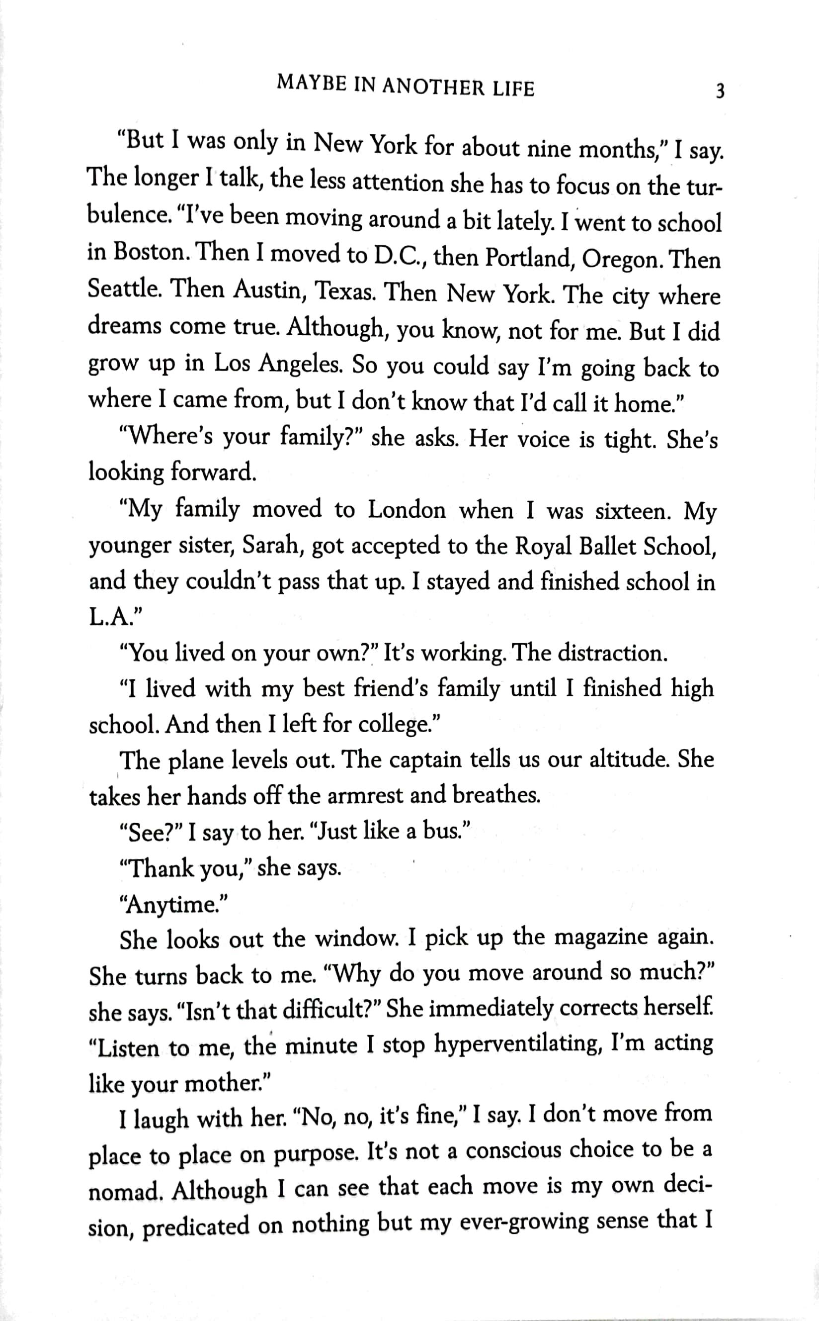 In concurrent storylines, Hannah lives out the effects of each decision. Quickly, these parallel universes develop into radically different stories with large-scale consequences for Hannah, as well as the people around her. As the two alternate realities run their course, Maybe in Another Life raises questions about fate and true love: Is anything meant to be? How much in our life is determined by chance? And perhaps, most compellingly: Is there such a thing as a soul mate?