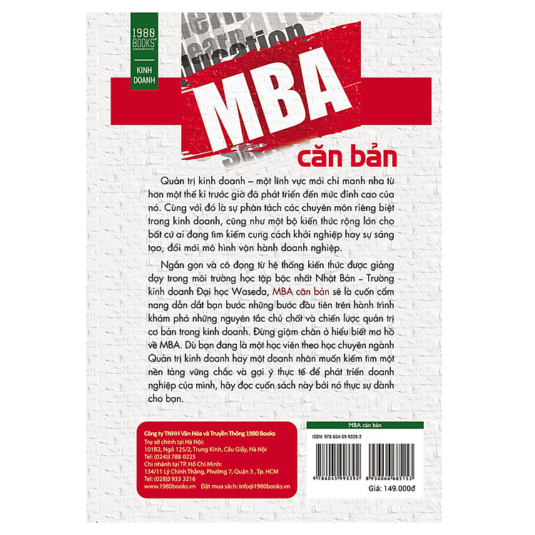 Không khó để tìm thấy hàng loạt giáo trình về MBA được chia sẻ trên mạng, cũng như các khóa học MBA cấp tốc được khai giảng thường xuyên. Nhưng để chọn lọc kiến thức nhanh nhất và dễ áp dụng vào thực tế nhất, tiết kiệm chi phí và thời gian, bạn sẽ làm thế nào? Để trợ giúp rất đông người có nhu cầu nắm bắt kiến thức nền về MBA, nhóm 11 tác giả - doanh nhân giàu kinh nghiệm thuộc Trường Kinh doanh Đại học Waseda đã cùng nhau viết cuốn sách "MBA căn bản" - tác phẩm tổng hợp các tài liệu nghiên cứu trong môi trường giáo dục kinh doanh chất lượng bậc nhất Nhật Bản.