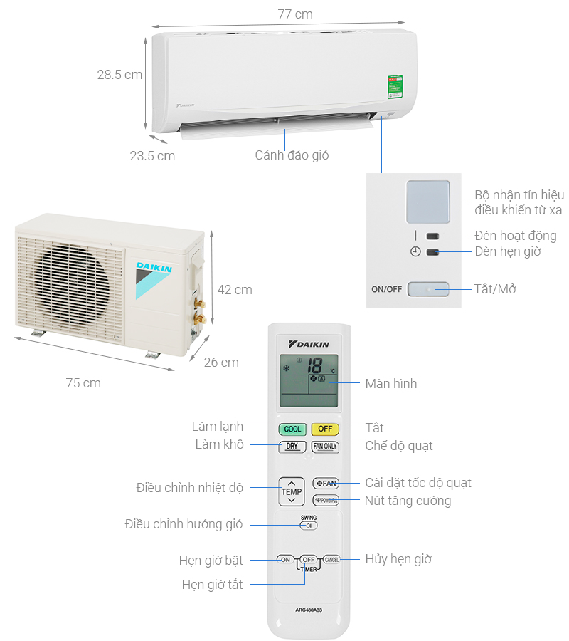 THÔNG SỐ KỸ THUẬT Xuất xứ Thương hiệu : Thái Lan - Sản xuất tại : Thái Lan Loại Gas lạnh R-32 Loại máy Inverter (tiết kiệm điện) Công suất làm lạnh 2.5 HP (2.5