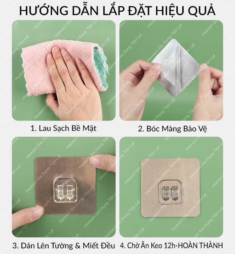 - Chờ 6-8 tiếng (quan trọng) để keo khô tạo liên kết chắc chắn trước khi treo đồ vật