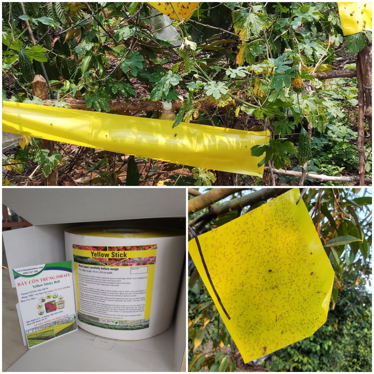 Keo dính vàng bẫy côn trùng gây hại nông nghiệp nhập khẩu Israeo như bẫy Ruồi, bẫy bọ phấn, bẫy rầy