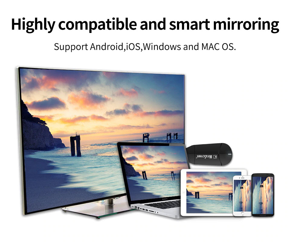 Mua tại TiktokMiraScreen K6 - HDMI Không Dây - Thiết Bị HDMI Không Dây Mirascreen Kết Nối Điện Thoại,Máy Tính, Tivi Chất Lượng 4K Đạt Chuẩn Hiện Đại Đảm Bảo Chất Lượng Truyền Tải Luôn Ổn Định Và Nhanh Chóng - Phá Bỏ Mọi Giới Hạn Công Nghệ MiraScreen K6 là một máy thu hiển thị WiFi, hỗ trợ chuẩn Miracast cho thiết bị Android và DLNA cho ứng dụng đa phương tiện gia đình. Hơn nữa, nó cũng tuân thủ AirPlay cho iOS phản chiếu. Thưởng thức phản chiếu màn hình với MiraScreen K6. Nó cho phép người dùng dễ dàng chia sẻ ảnh, nhạc, video, PPT và các nội dung khác trong điện thoại thông minh, máy tính bảng của bạn lên màn hình lớn hơn như HDTV hoặc máy chiếu. Lưu ý 1: Vui lòng đảm bảo rằng điện thoại thông minh và Máy tính bảng của bạn hỗ trợ chức năng Miracast, DLNA, Airplay trước khi bạn mua. Lưu ý 2: Khoảng cách giữa Điện thoại thông minh / Máy tính bảng của bạn và Bộ thu hiển thị không dây WiFi phải trong vòng 6 mét để đảm bảo hiệu quả truyền tốt hơn. Lưu ý 3: Vui lòng đặt Mô-đun WiFi bên ngoài trước TV của bạn, đảm bảo rằng không có trở ngại nào giữa Mô-đun WiFi và Điện thoại thông minh / Máy tính bảng của bạn. Lưu ý 4: Vui lòng kết nối khóa với TV 4K của bạn trước, sau đó tùy chọn độ phân giải 4K sẽ hiển thị trong cài đặt độ phân giải.