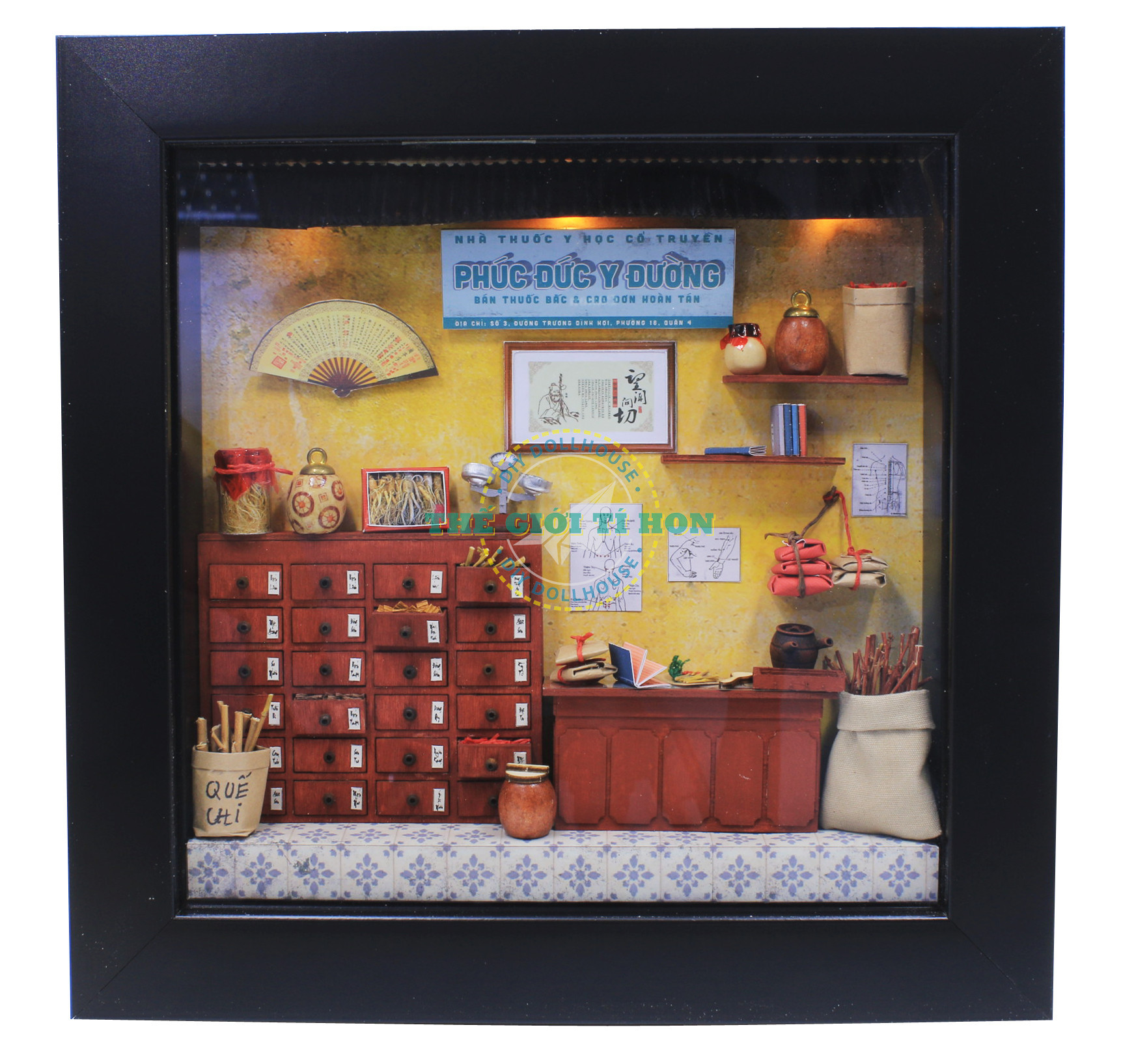 MÔ HÌNH SÀI GÒN XƯA VÀ NAY - KHUNG TRANH Tiệm Thuốc Bắc - K01 KHÁCH LƯU Ý - SẢN PHẨM TỰ SƠN VÀ LẮP RÁP - SẢN PHẨM CHƯA BAO GỒM KEO DÁN CHUYÊN