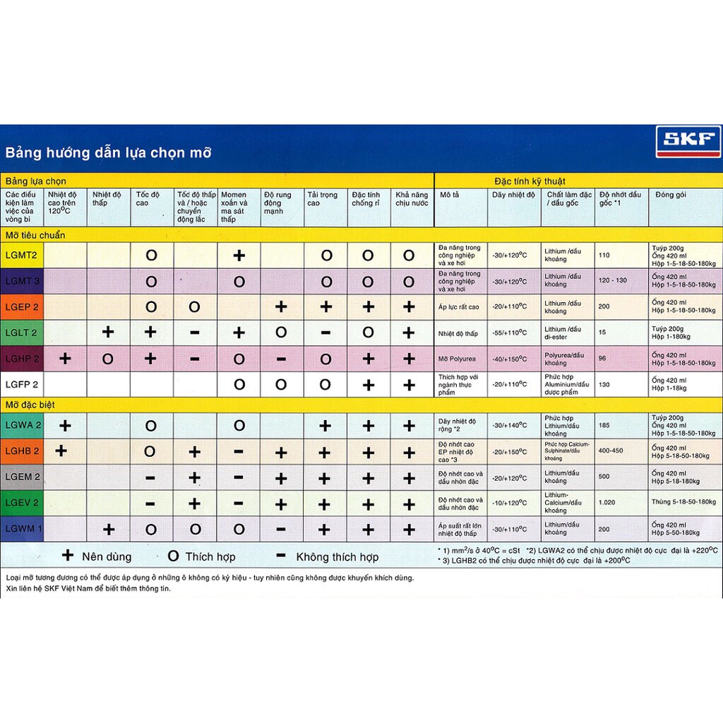 Giới thiệu đặc tính các loại mỡ bò bôi trơn SKF (LGMT 2 - LGMT 3 - LGHP 2 - LGHB 2 - LGWA 2 ...)