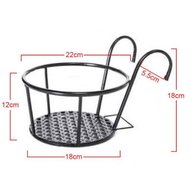 Giỏ treo chậu hoa ban công hình tròn bằng sắt màu đen tiện lợi. . Giá sắt treo ban công làm bằng sắt rỗng, nhẹ vững chắc, sơn đen làm nổi bật thêm vẻ đẹp