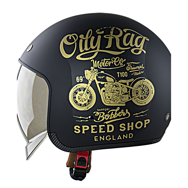 - Phong cách thiết kế: mũ kiểu 3/4 kèm kính dài, mũ được thiết kế dáng tròn, đi kèm 2 miếng ốp má, giúp tăng thêm hiệu quả bao phủ, bảo vệ khuôn mặt. -