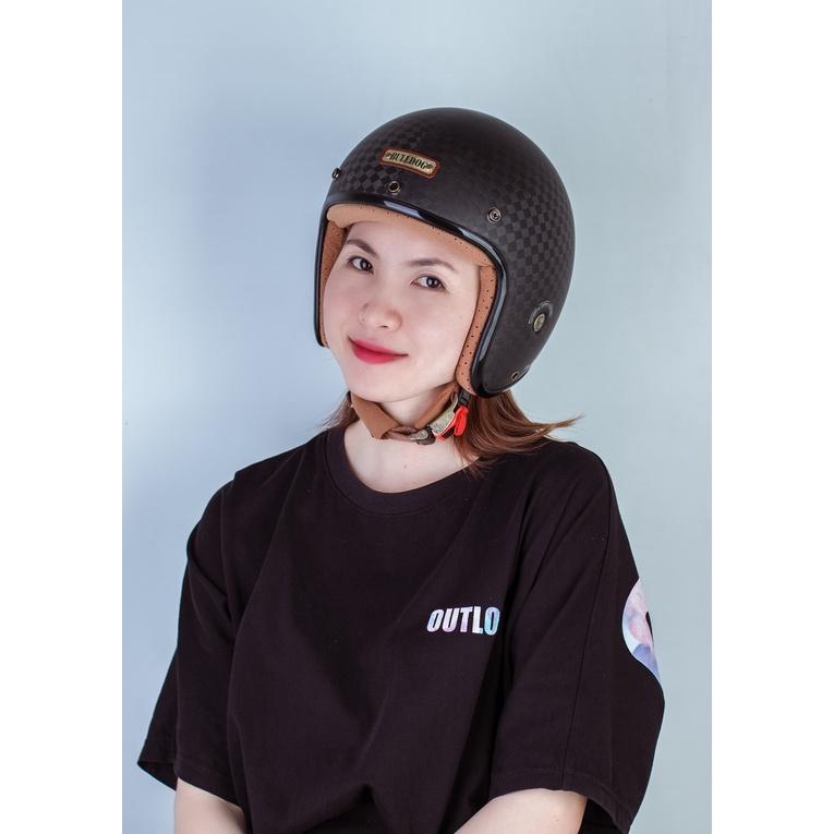 Bulldog Heli Carbon 3/4 đậm chất cổ điển và được trau chuốt tỉ mỉ đến từng chi tiết, đặc biệt chất liệu mới sợi Carbon giúp nón cực kì nhẹ lại rất an toàn
